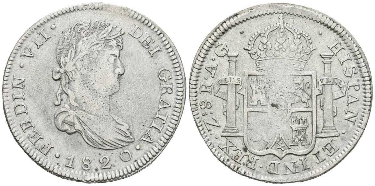 FERNANDO VII. 8 Reales. 1820. Zacatecas AG. Cal-695. Ar. 26,76g. MBC-/MBC.