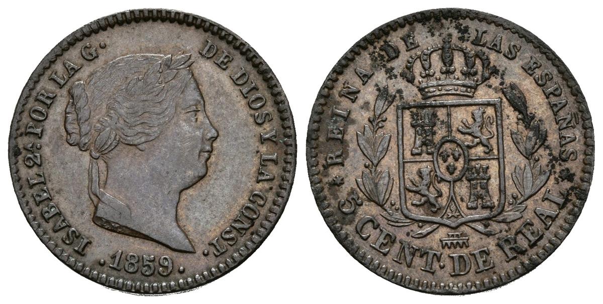 ISABEL II. 5 Céntimos de Real. 1859. Segovia. Cal-616. Ae. 2,00g. Reverso algo sucio. EBC-.