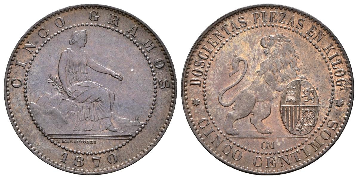GOBIERNO PROVISIONAL. 5 Céntimos. 1870. Barcelona OM. Cal-25. Ae. 5,00g. EBC+/SC.