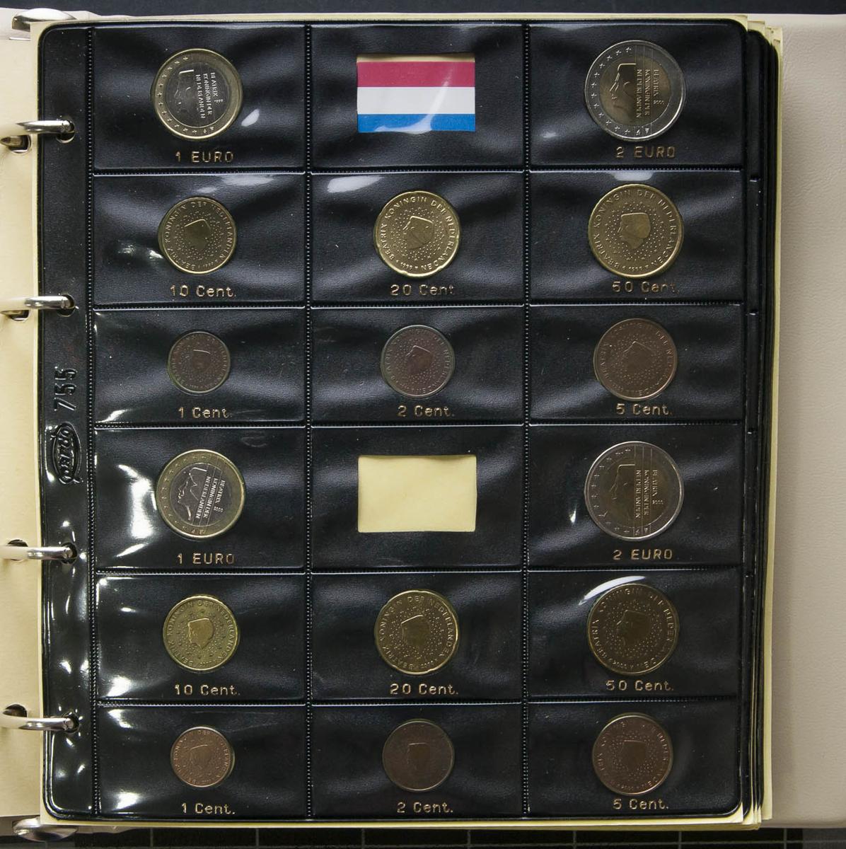 ZONA EURO. Magnífica colección montado en 5 álbumes, conteniendo series de Euro de los siguientes países: Alemania 1999, 2000 y 2001, este último con faltas, 2002 J-G-D-F-A e incluye medalla, 2003 J-G-D-F-A, 2004 J-G-D-F-A; Austria 2002 y 2004; Finlandia desde 1999 hasta 2004 con algunas faltas e incluye medalla; Francia 1999 a 2004; Grecia 2002 normal + *, 2003 y 2008; Holanda desde 1999 hasta 2004; Irlanda 2002 a 2004; Italia 2002; Luxemburgo desde 2002 hasta 2004; Polonia 2004; Portugal 2002 y 2004; San Marino 2004 (incluye 1, 2 y 5 Cent); Vaticano 2004. Incluye emisiones tipo ensayo de Armenia, Albania, Bielorrusia, Cabo Verde, Creta, Croacia, Eslovenia, Estonia, Georgia, Liechtenstein, Rusia y Suecia, todas emitidas en 2004.. Casi al completo en calidad Sin Circular. A EXAMINAR.