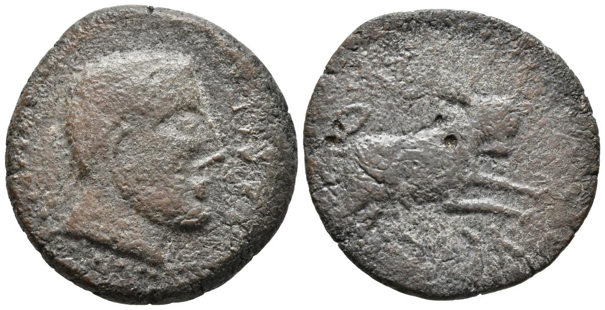ASIDO. As. 50 a.C. Medina Sidonia (Cádiz). A/ Cabeza masculina a derecha, delante leyenda externa ASIDO. R/ Toro a derecha, encima marca, debajo inscripción libio-fenicia 'SDN. FAB-153. Ae. 15,91g. BC/BC-. Rara.