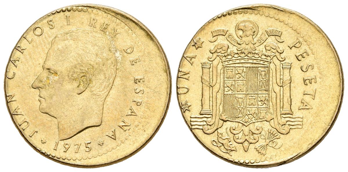JUAN CARLOS I. 1 Peseta 1975 *19-79. Acuñación desplazada 3mm. 3,51g. EBC.