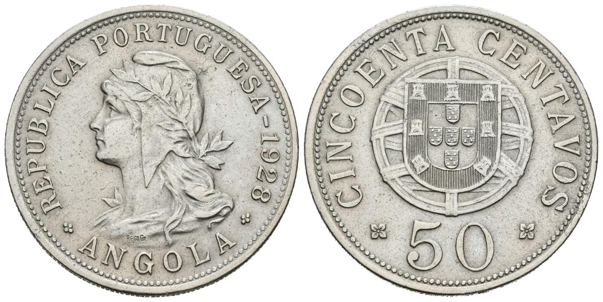ANGOLA. 50 Centavos. (Ar. 10,41g/30mm). 1928. (Gomes 14.02; Km#69). EBC.