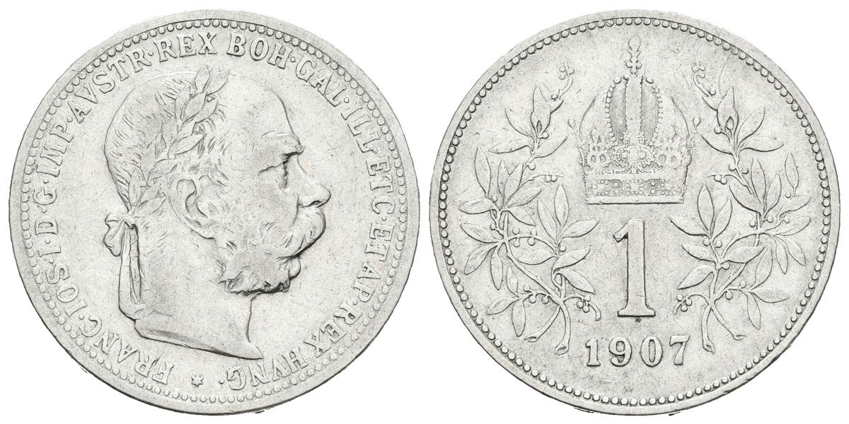 AUSTRIA. Franz Joseph I. 1 Corona. 1907. Km#2804. Ar. 4,92g. MBC-. Rara.
