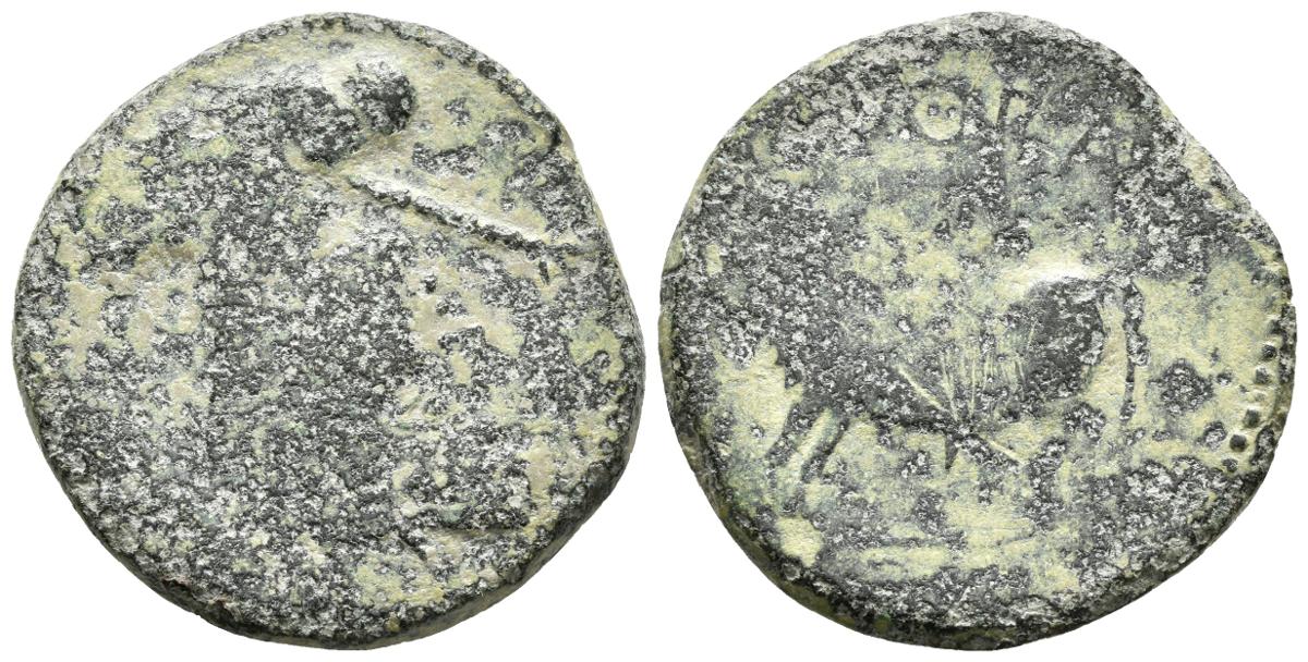 BORA. Semis. 100-50 a.C. Alcaudete (Jaén). A/ Busto femenino a izquierda, delante cetro. R/ Toro a izquierda, encima BORA. FAB-291. Ae. 9,37g. RC.