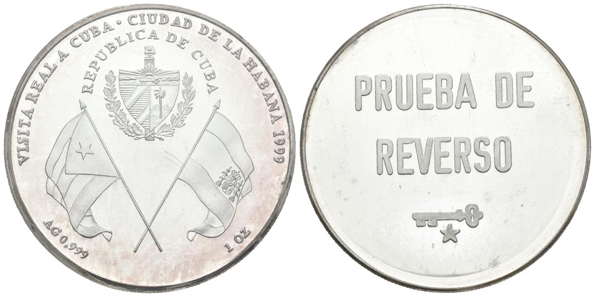 CUBA. 10 Pesos. 1999. Visita Real-Dos pueblos unidos por la historia. PRUEBA DE REVERSO. Km#No cita. Ar. 31,21g. Incluye certificado S.D.F.N. PROOF. Rarísima.