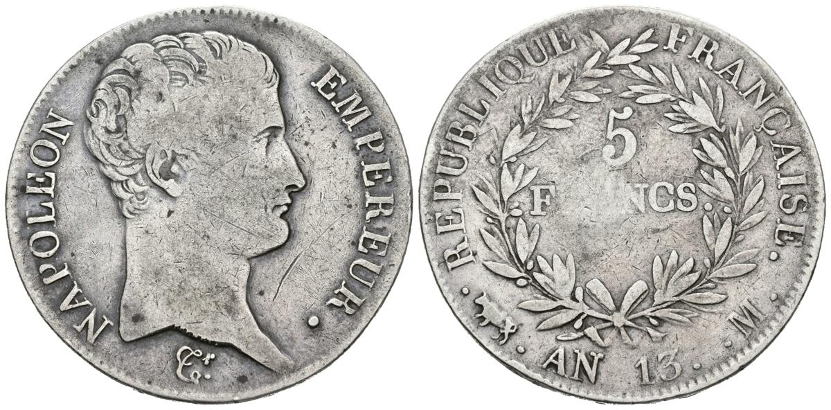 FRANCIA. 5 Francs. An 13. Toulouse M. Gad 580. Ar. 24,58g. BC+.