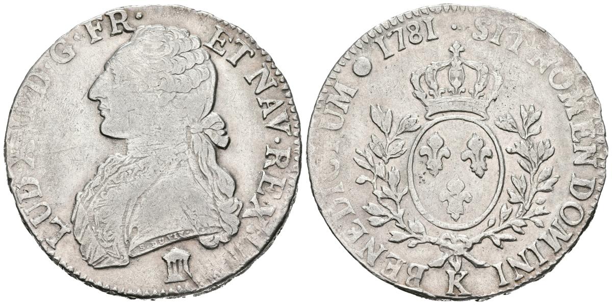 FRANCIA. Louis XVI. Ecu. 1781. Bourdeaux K. Gad. 2187; Dy. 1708. Ar. 29,37g. MBC-.