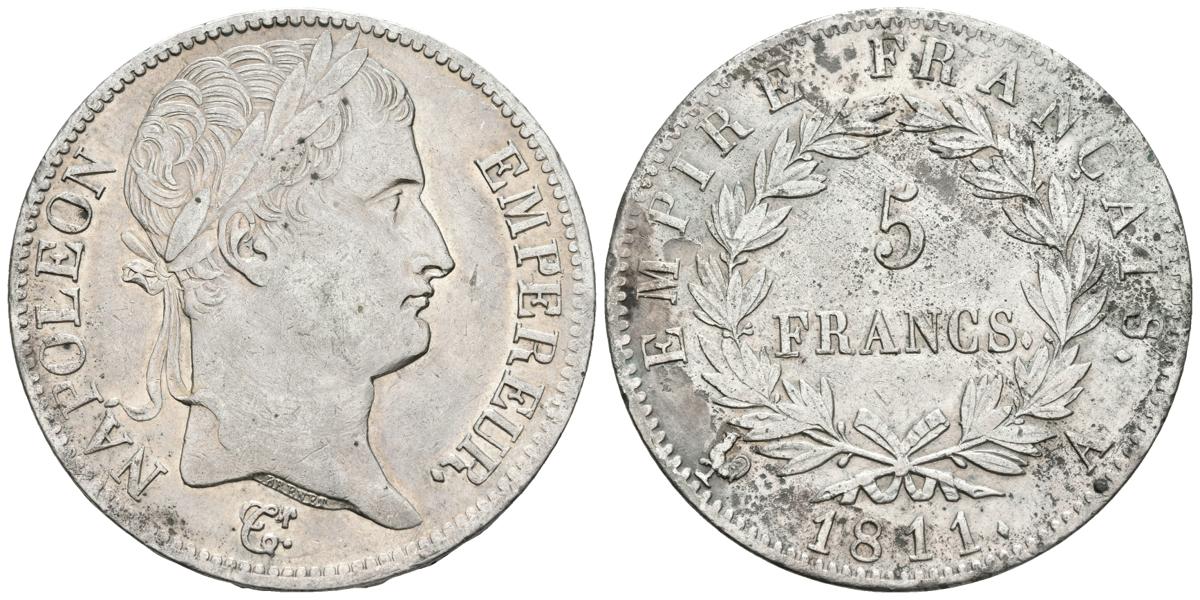 FRANCIA. Napoleón. 5 Francs. 1810. París A. G.584. Ar. 24,99g. Marquitas. MBC+/MBC.