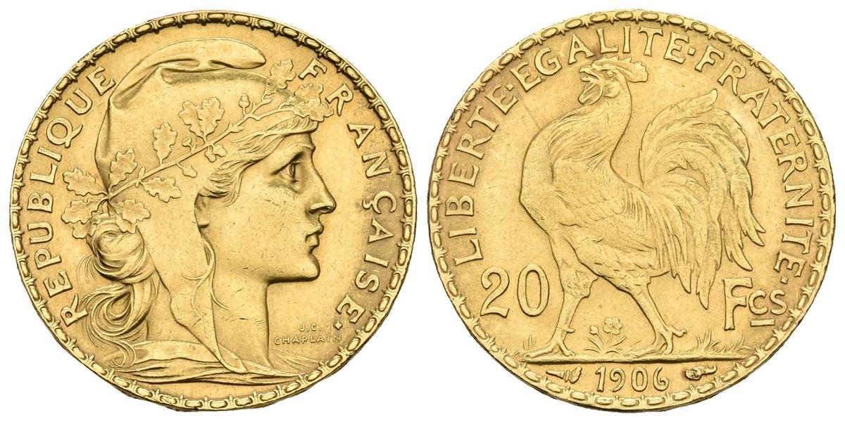 FRANCIA. 20 Francs. 1906. Km#857; Gadoury 1064. Au. 6,45g. Sirvió como joya. EBC-/MBC+.