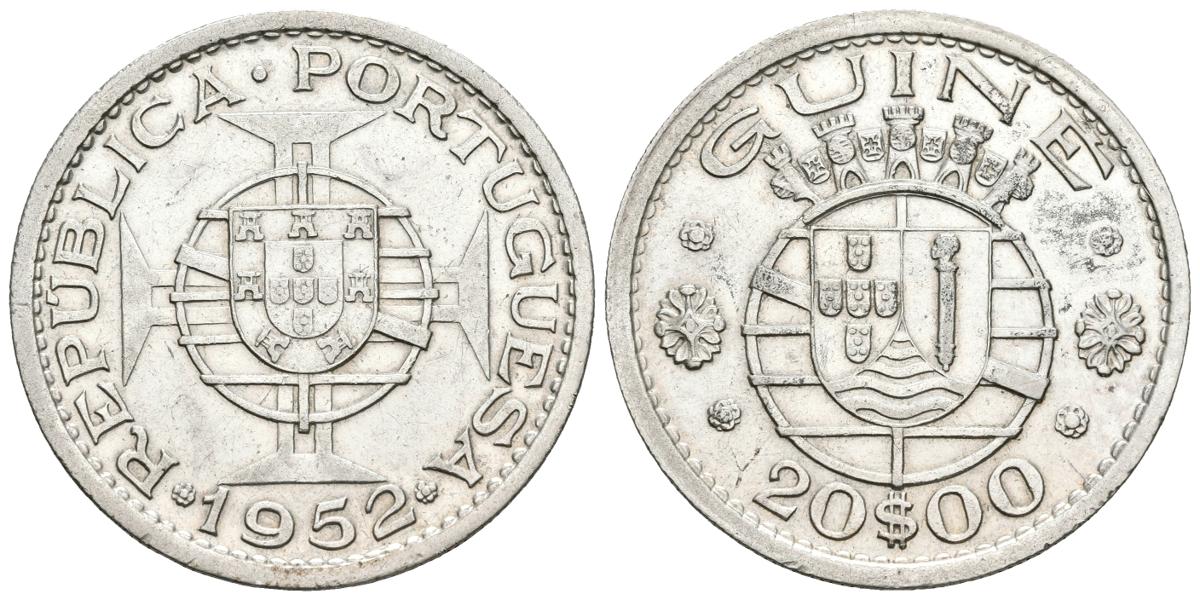 GUINEA. 20 Escudos. (Ar. 9,61g/30mm). 1952. (Gomes 16.01; Km#11). MBC+.