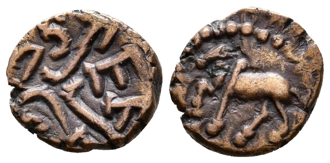 INDIA, Nagas de Narwar. 1/4 Kakani. 200-340 a.C. Ae. 0,60g. MBC+.