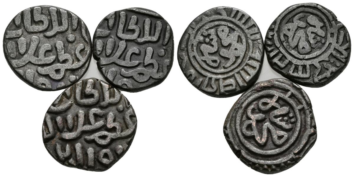 INDIA, Sultanado de Delhi. Lote compuesto por 3 monedas de Ala Al-Din Muhammad II Khilji. 2 Ghani. 1296-1316 d.C. Ve. MBC+.