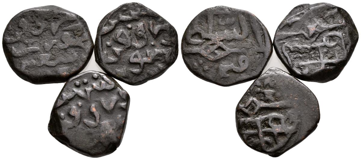 INDIA, Sultanado de Cachemira. Lote compuesto por 3 monedas de Fath Shah. 1 Punchsi. 1483-1520 d.C. Ae. MBC/MBC+.
