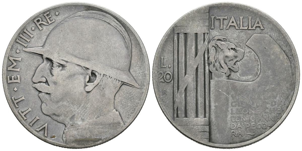 ITALIA. Vittorio Emanuele III. 20 Lire. 1928. Km#70. Ar. 19,39g. BC+.