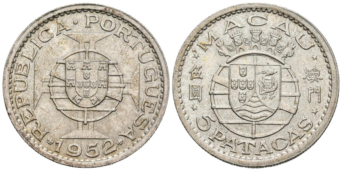 MACAO. 5 Patacas. (Ar. 15,06g/30mm). 1952. (Km#5,; Gomes 22.01). EBC.