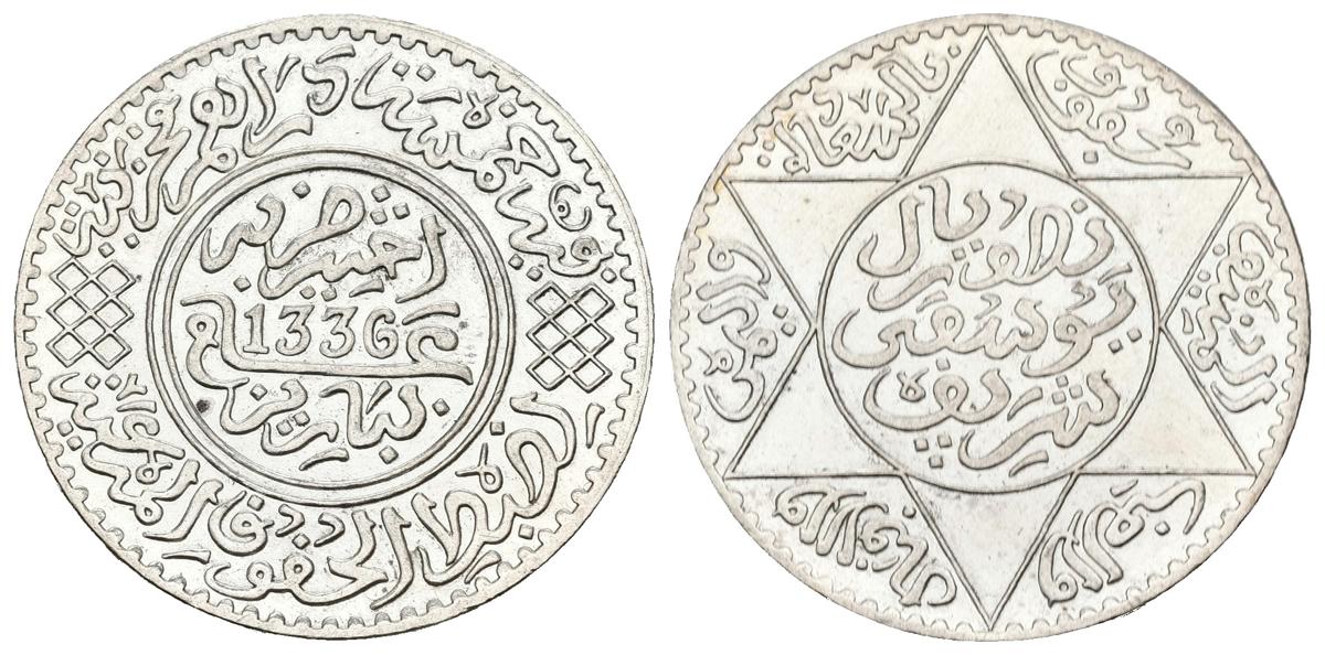 MARRUECOS. Yusuf. 1/2 Rial ( 5 Dirhams). 1336 H-1917. Y#32. Ar. 12,49g. EBC+.