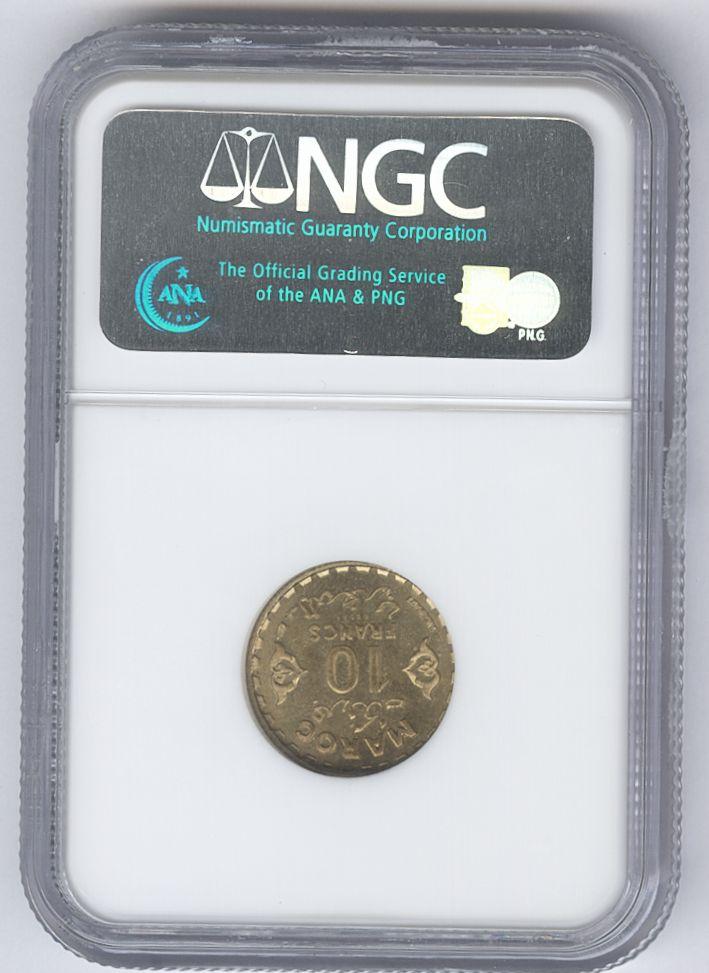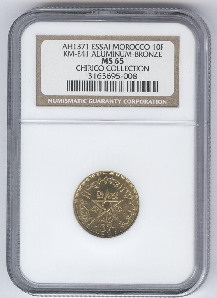 MARRUECOS. 10 Francs. 1371 H (1952). Essai. Km#E41. Centificada por NGC como MS65. SC. Ex Carl F. Chirico Jr. Collection.