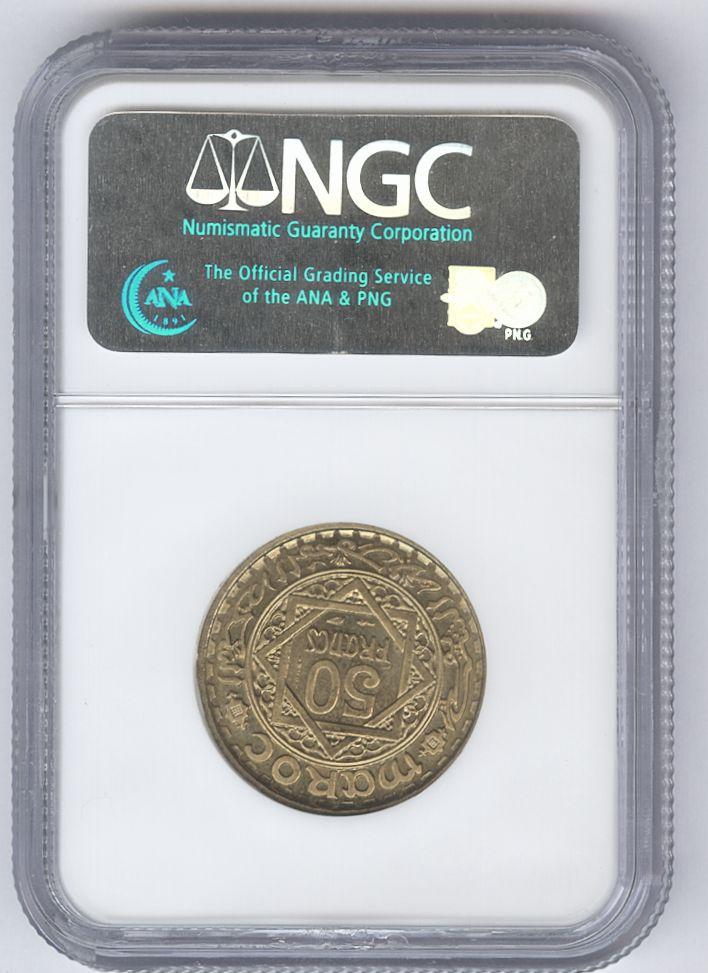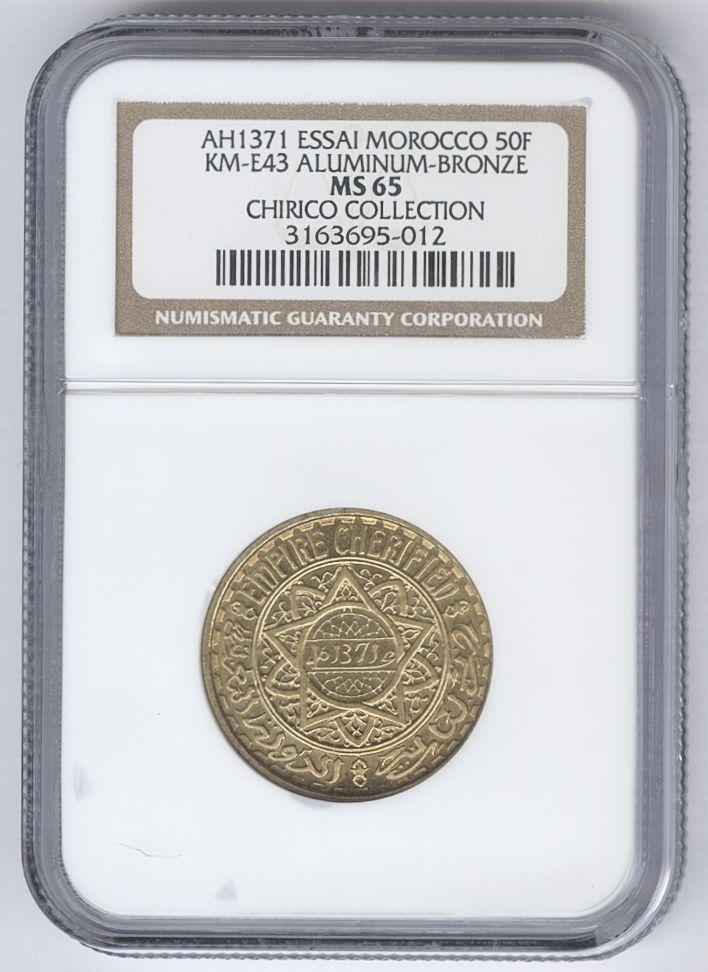 MARRUECOS. 50 Francs. 1371 H (1952). Essai. Km#E43. Centificada por NGC como MS65. SC. Ex Carl F. Chirico Jr. Collection.