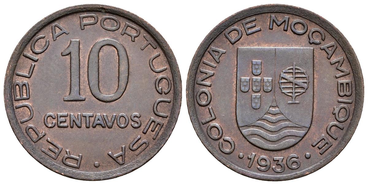 MOZAMBIQUE. 10 Centavos. (Ae. 3,96g/22mm). 1936. (Km#Pr3; Gomes 01.01). EBC+. Tono.