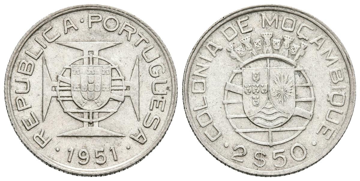 MOZAMBIQUE. 2,50 Escudos. (Ar. 3,45g/20mm). 1951. (Km#68). EBC-/MBC+.