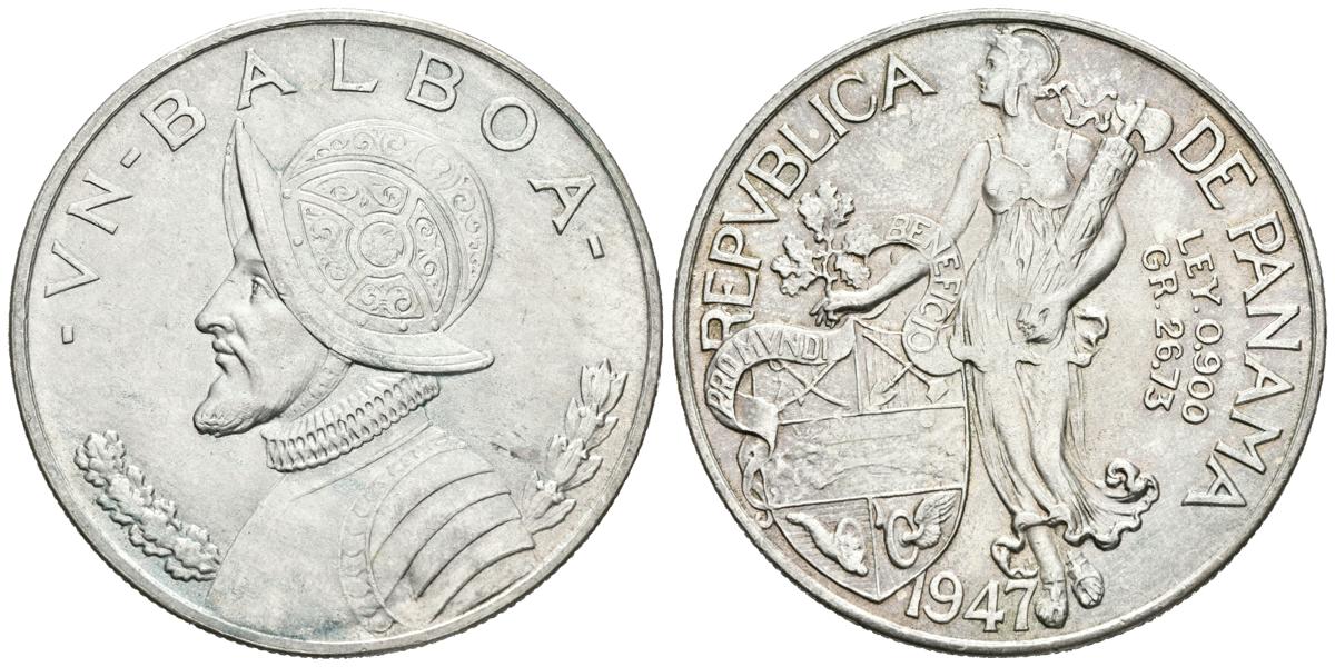 PANAMA. 1 Balboa. (Ar. 26,76g/37mm). 1947. (Km#13). SC-.