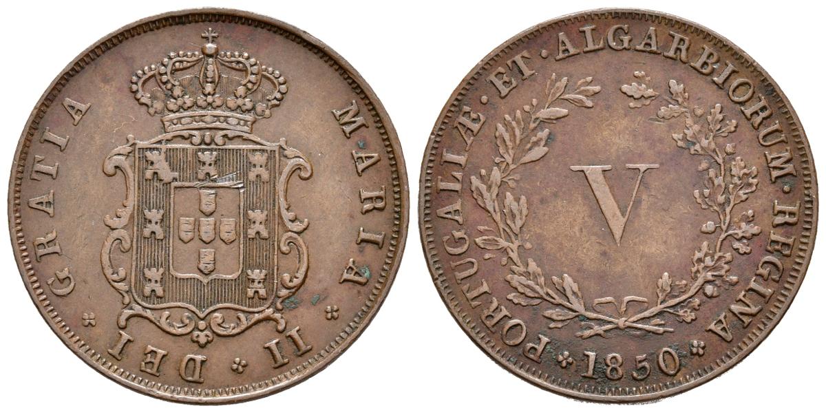 PORTUGAL, María II. V Reis. (Ae. 6,31g/21mm). (Gomes 32.04). MBC-.