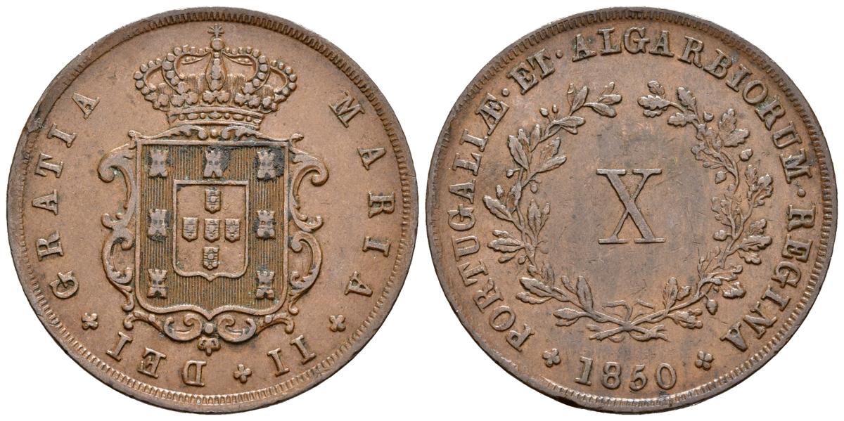 PORTUGAL, María II. X Reis. (Ae. 12,07g/31mm). (Gomes 33.10). MBC. Marquitas.