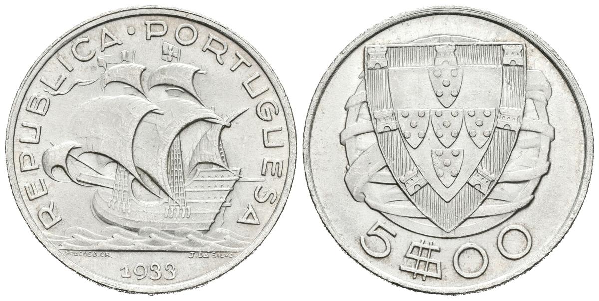 PORTUGAL. 5 Escudos. (Ar. 6,98g/25mm). 1939. (Gomes 35.02; Km#581). EBC.