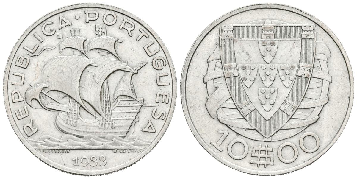 PORTUGAL. 10 Escudos. (Ar. 12,24g/30mm). 1933. (Gomes 43.02; Km#582). SC. Brillo original. Escasa así.