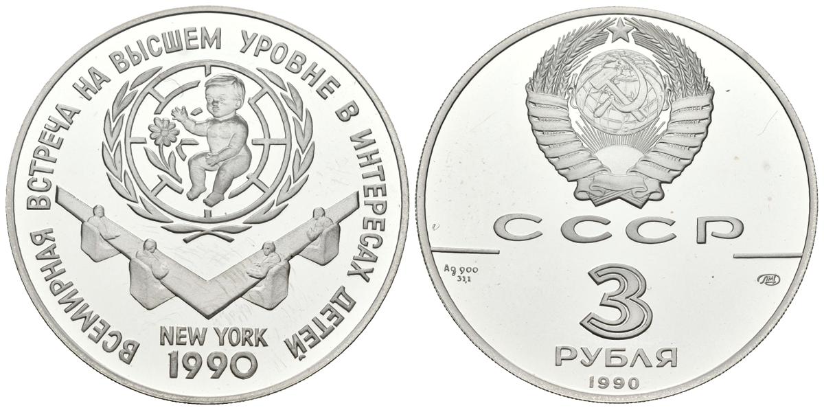 RUSIA. 3 Rublos. 1990. Km#Y247. Ar. 34,88g. PROOF.