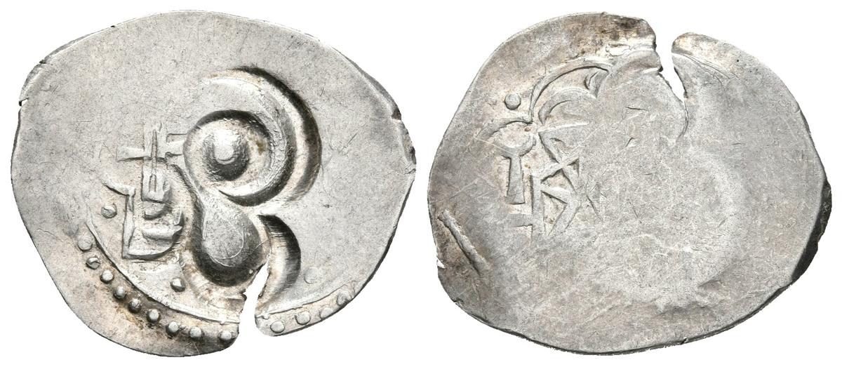 RYAZAN. Oleg Ivanocivh. 1 Denga. 1350-1402. Contramarca habitual en las imitaciones de la Golden Horde (Horda de oro) a finales del Siglo XIV-Principios del siglo XV. Ar. 1,21g. MBC+.