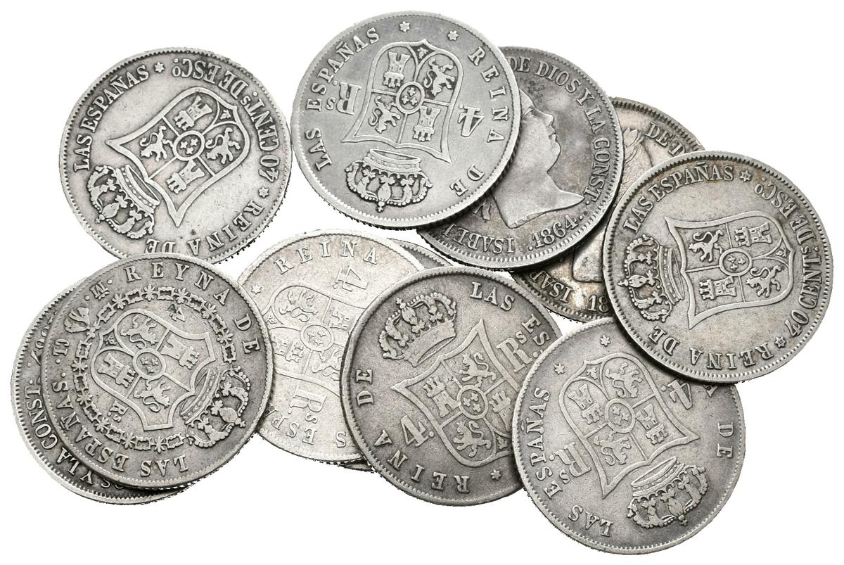 ISABEL II. Lote compuesto por 11 monedas, conteniendo: 4 Reales de Madrid: 1848, 1852, 1853, 1856, 1858 y 1864 y 40 Céntimos de Escudo de Madrid: 1864, 1865, 1866, 1867 y 1868. Ar. A EXAMINAR.