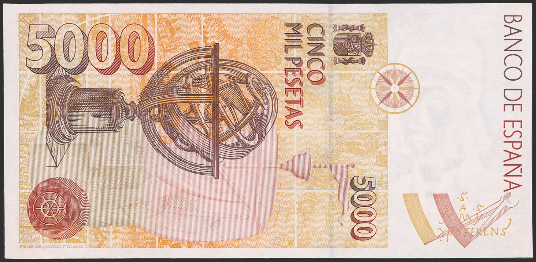5000 Pesetas. 12 de Octubre de 1992. Sin serie. (Edifil 2023: 484). SC.