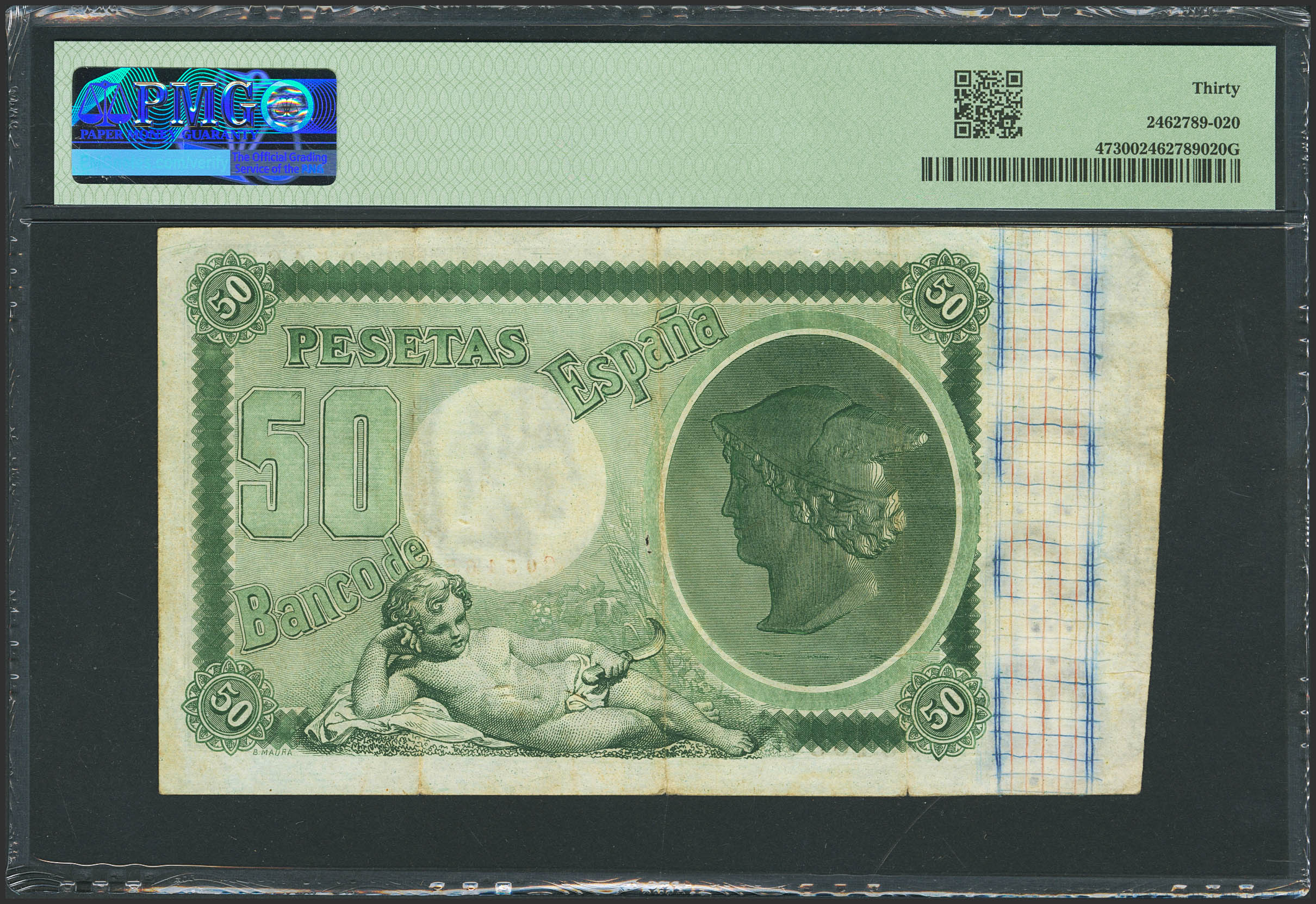 50 Pesetas. 2 de Enero de 1898. Sin serie. (Edifil 2023: 304, Pick: 47). Raro, especialmente sin reparaciones, pequeñas roturitas en la doblez central. MBC+. Encapsulado PMG30.