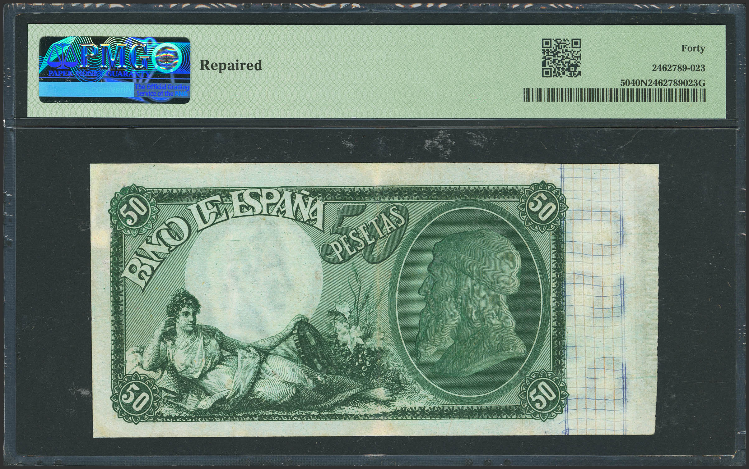 50 Pesetas. 25 de Noviembre de 1899. Serie G. (Edifil 2023: 307a, Pick: 50). Reparado. EBC-. Encapsulado PMG40NET.