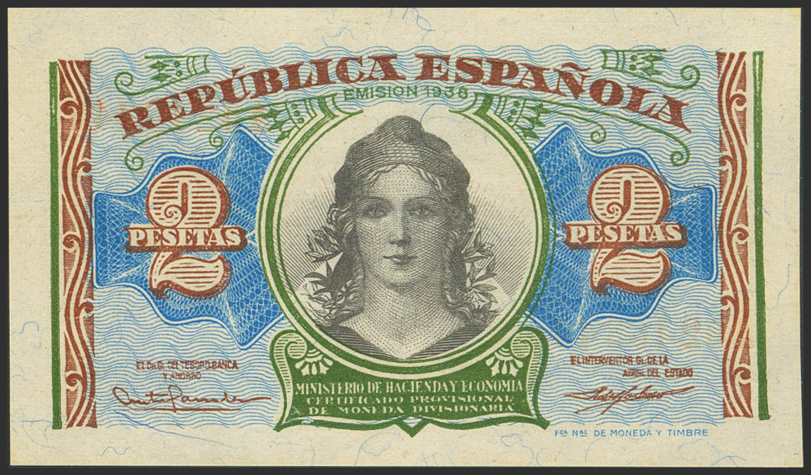 2 Pesetas. 1938. Serie A. (Edifil 2023: 393). Apresto original. SC.