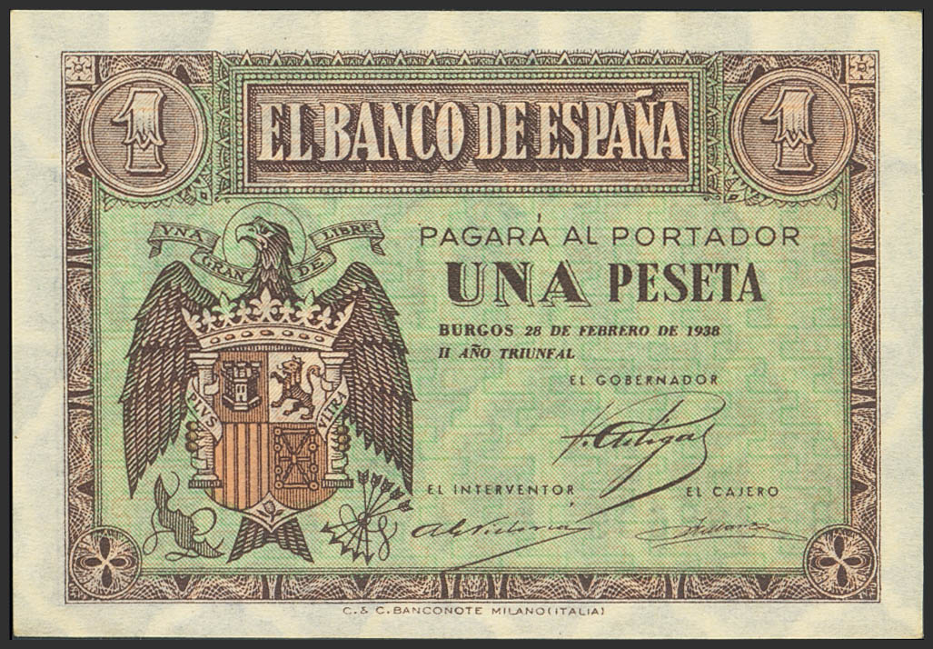 1 Peseta. 28 de Febrero de 1938. Serie B. (Edifil 2023: 427a). Manchitas del tiempo, apresto original. SC-.