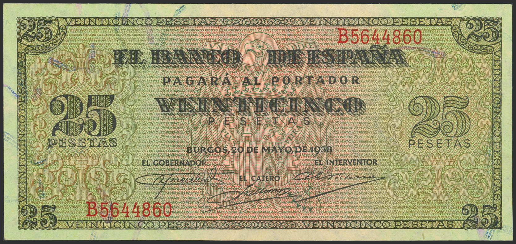 25 Pesetas. 20 de Mayo de 1938. Serie B. (Edifil 2023: 430a). Apresto original. SC-.