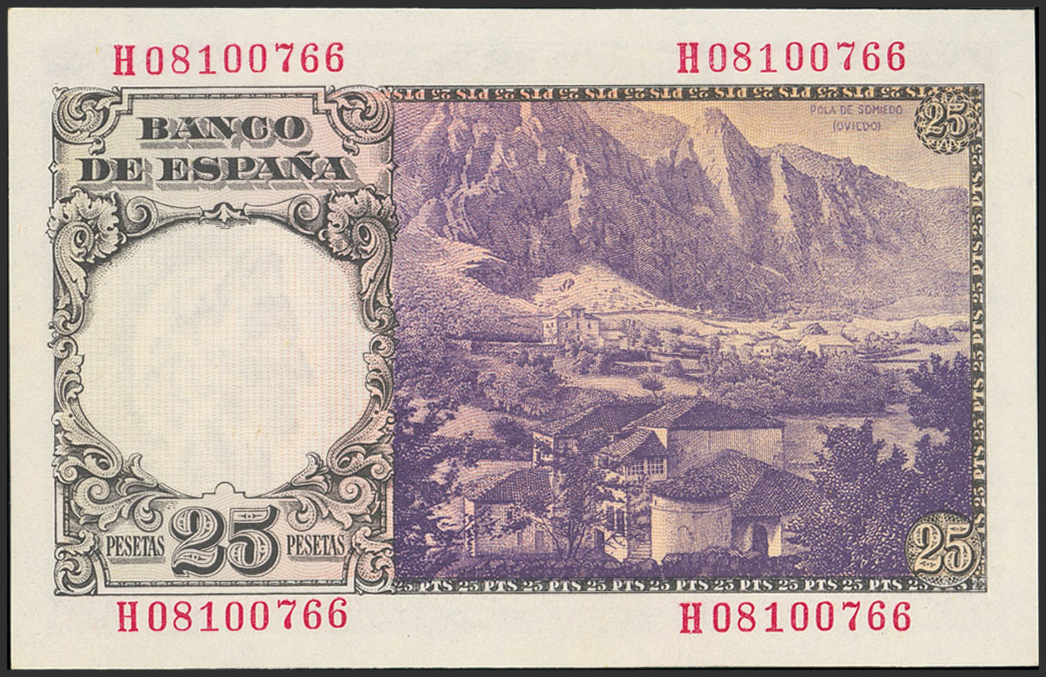 25 Pesetas. 19 de Febrero de 1946. Serie H. (Edifil 2023: 450a). Apresto original. SC.