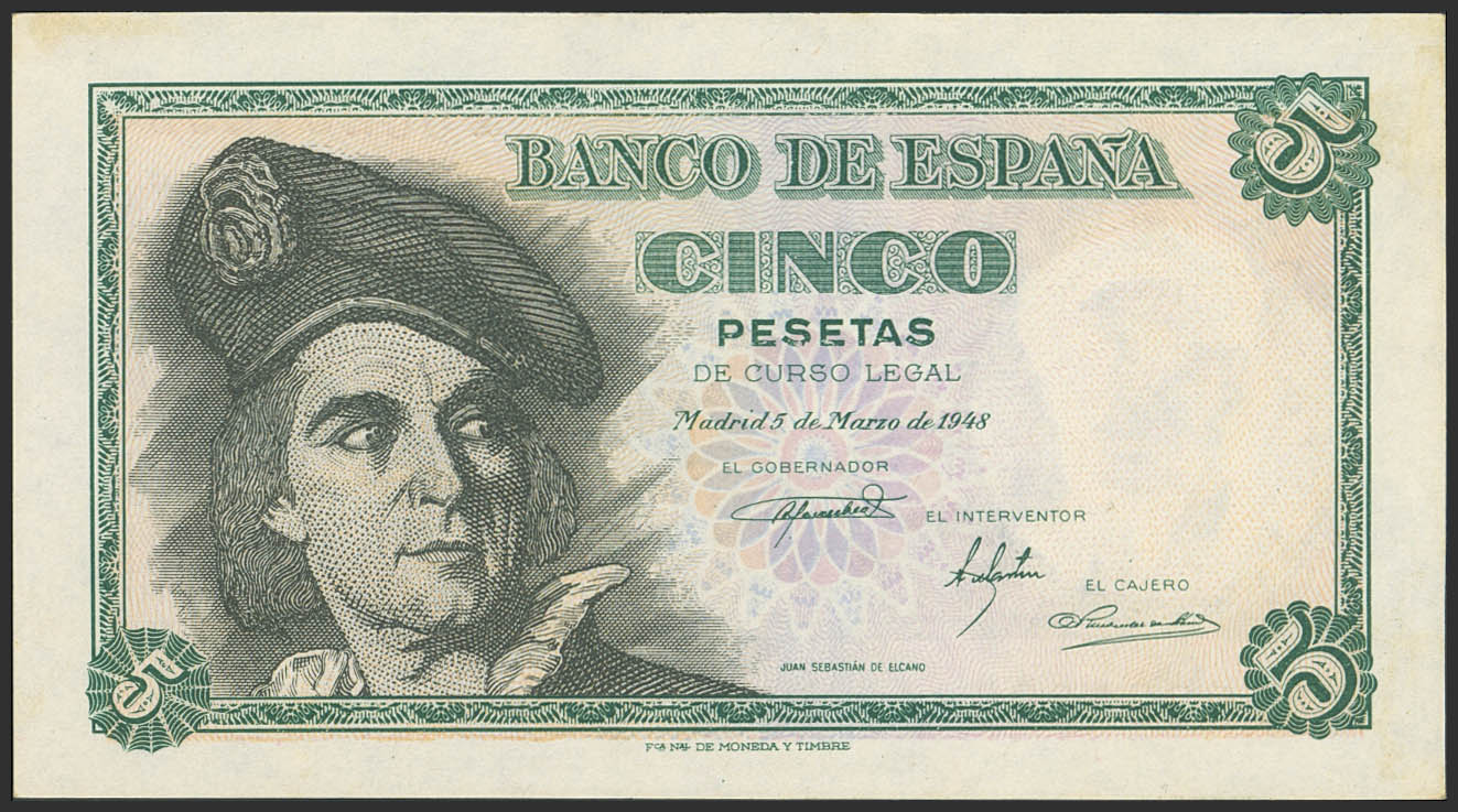 5 Pesetas. 15 de Marzo de 1948. Serie I. (Edifil 2023: 455a). Mínimas manchitas del tiempo, apresto original. SC-.