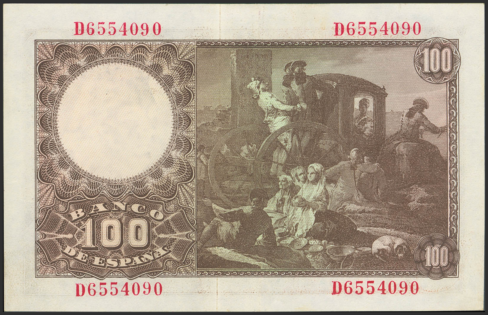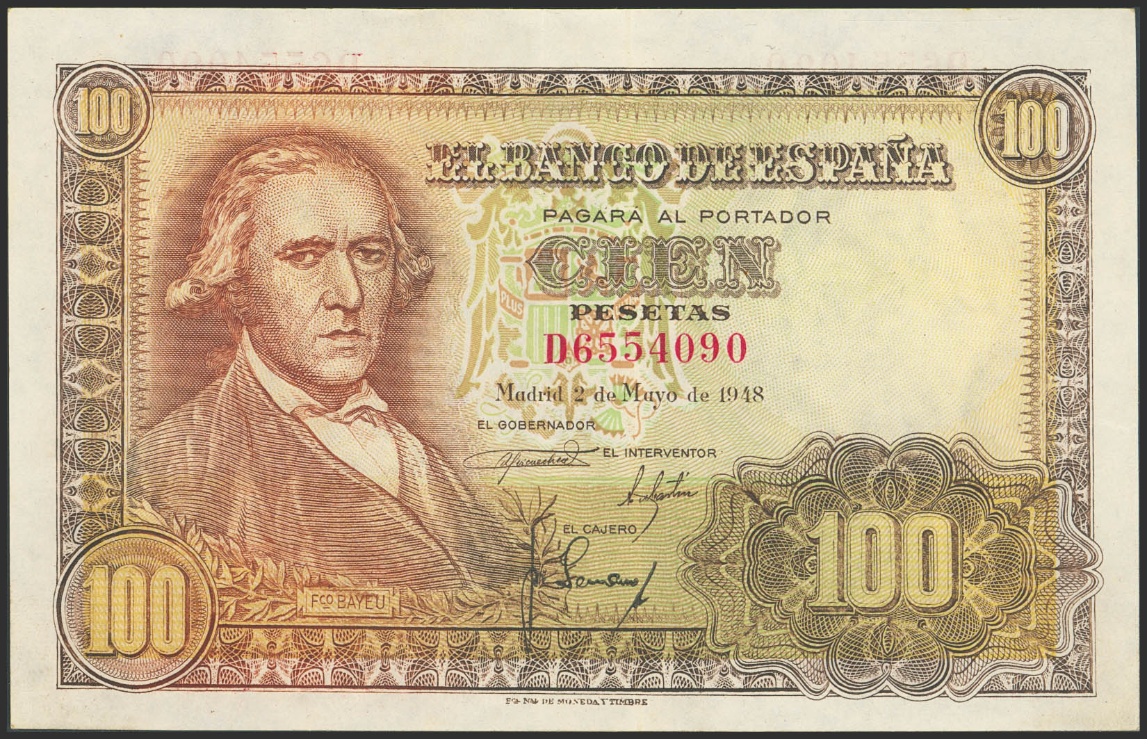 100 Pesetas. 2 de Mayo de 1948. Serie D. (Edifil 2023: 456a). Apresto original. EBC++.