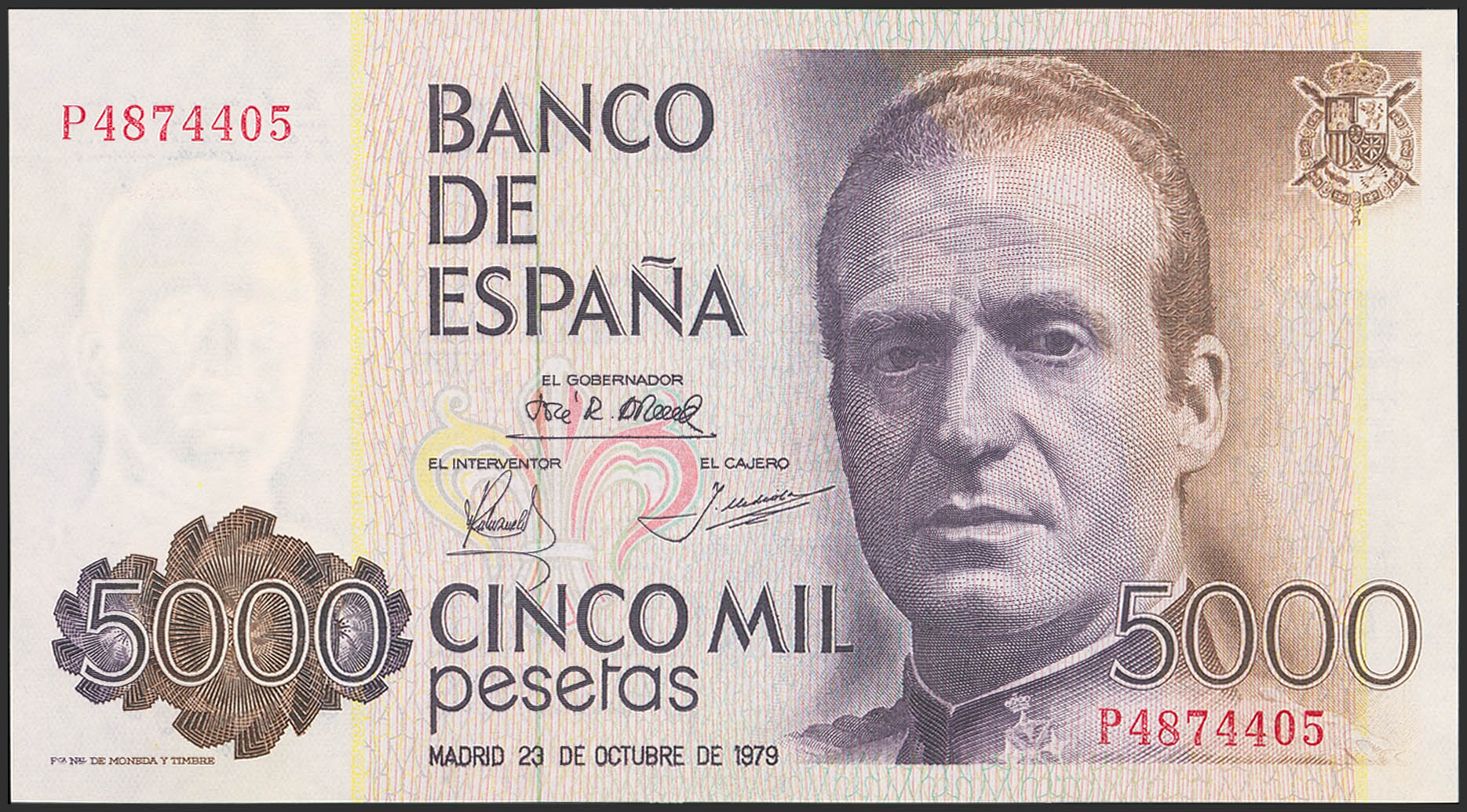 5000 Pesetas. 23 de Octubre de 1979. Serie P. (Edifil 2023: 478a). SC.