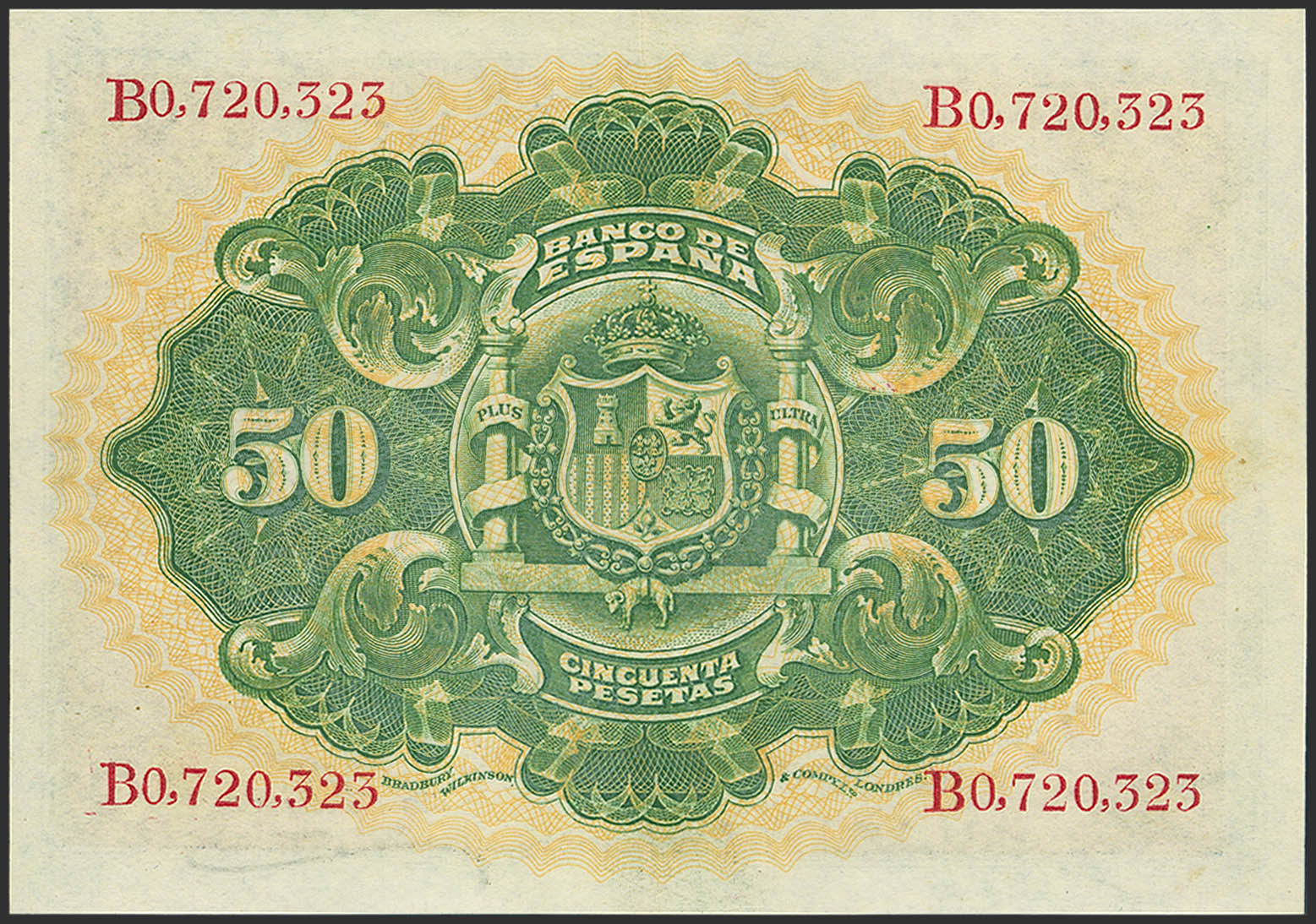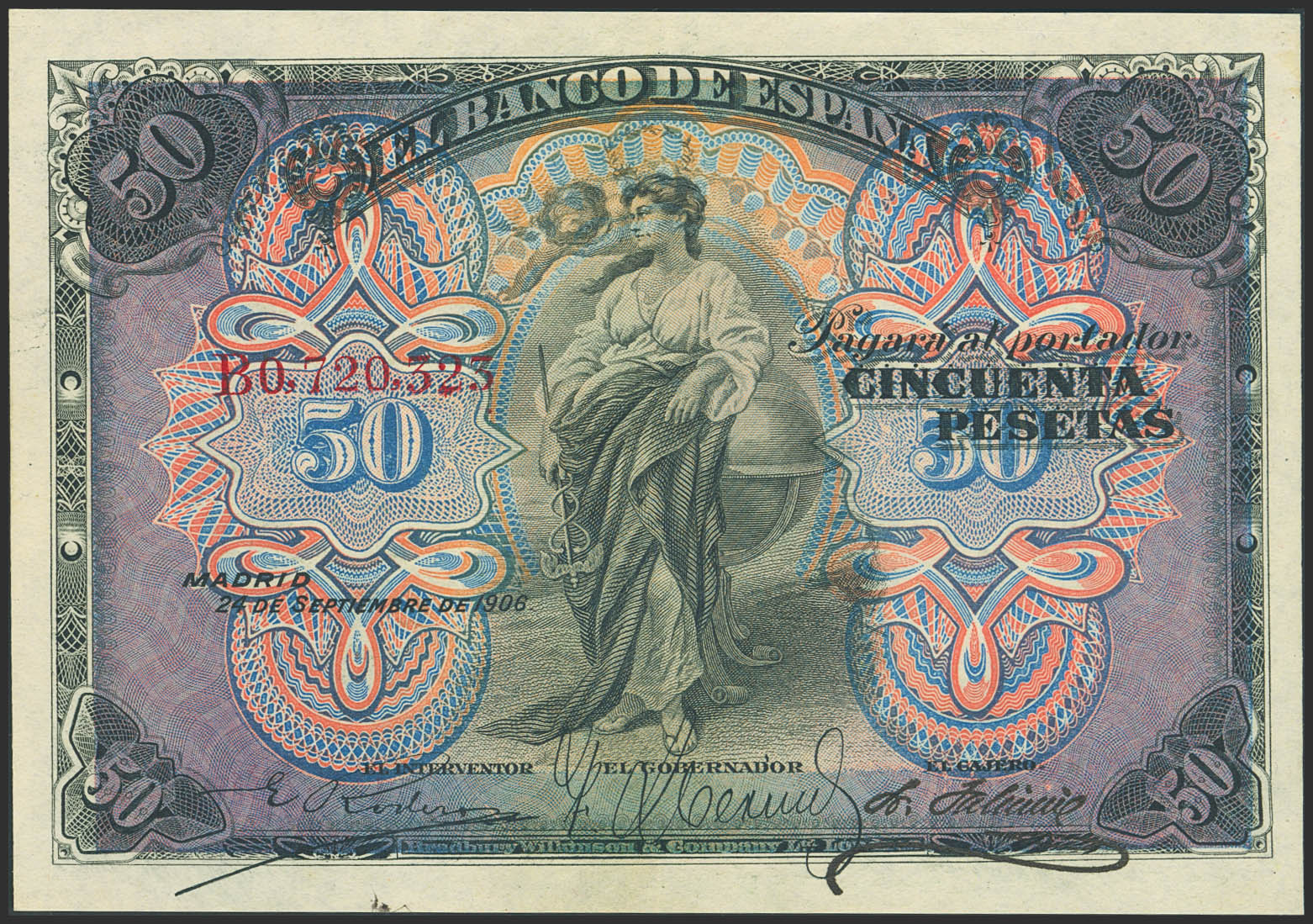 50 Pesetas. 24 de Septiembre de 1906. Serie B. (Edifil 2023: 315a). Inusual en esta calidad. EBC.