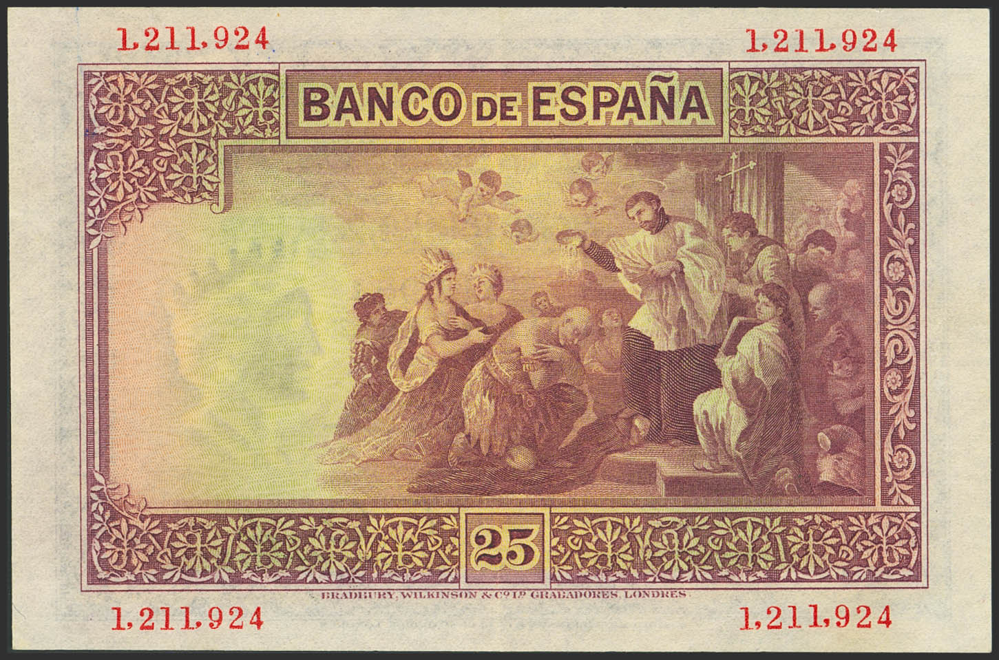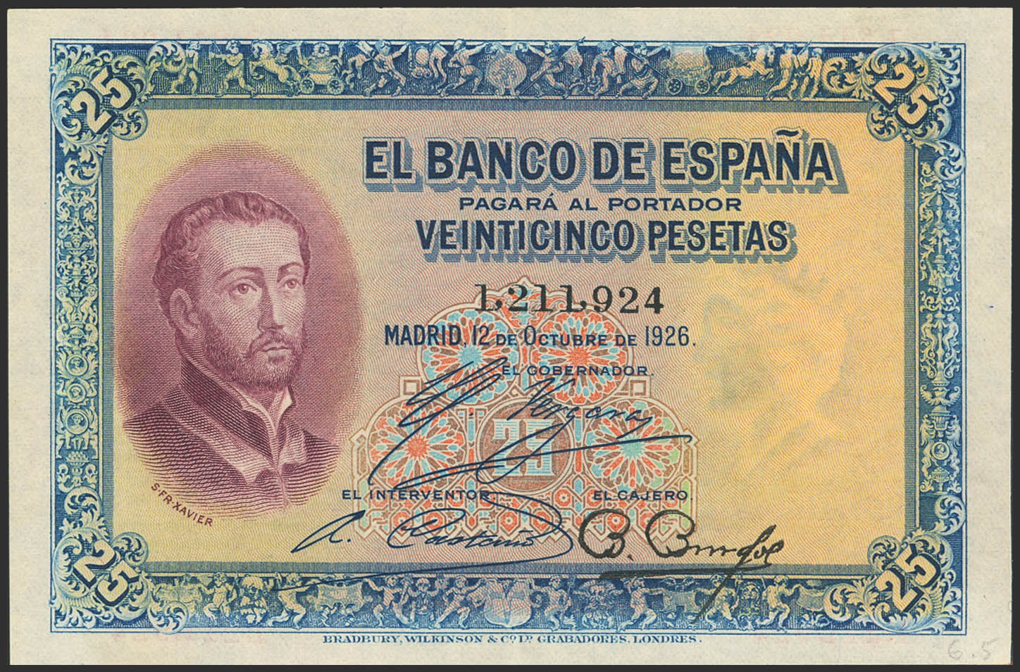 25 Pesetas. 12 de Octubre de 1926. Sin serie. (Edifil 2023: 325). Conserva parte de su apresto original. EBC.