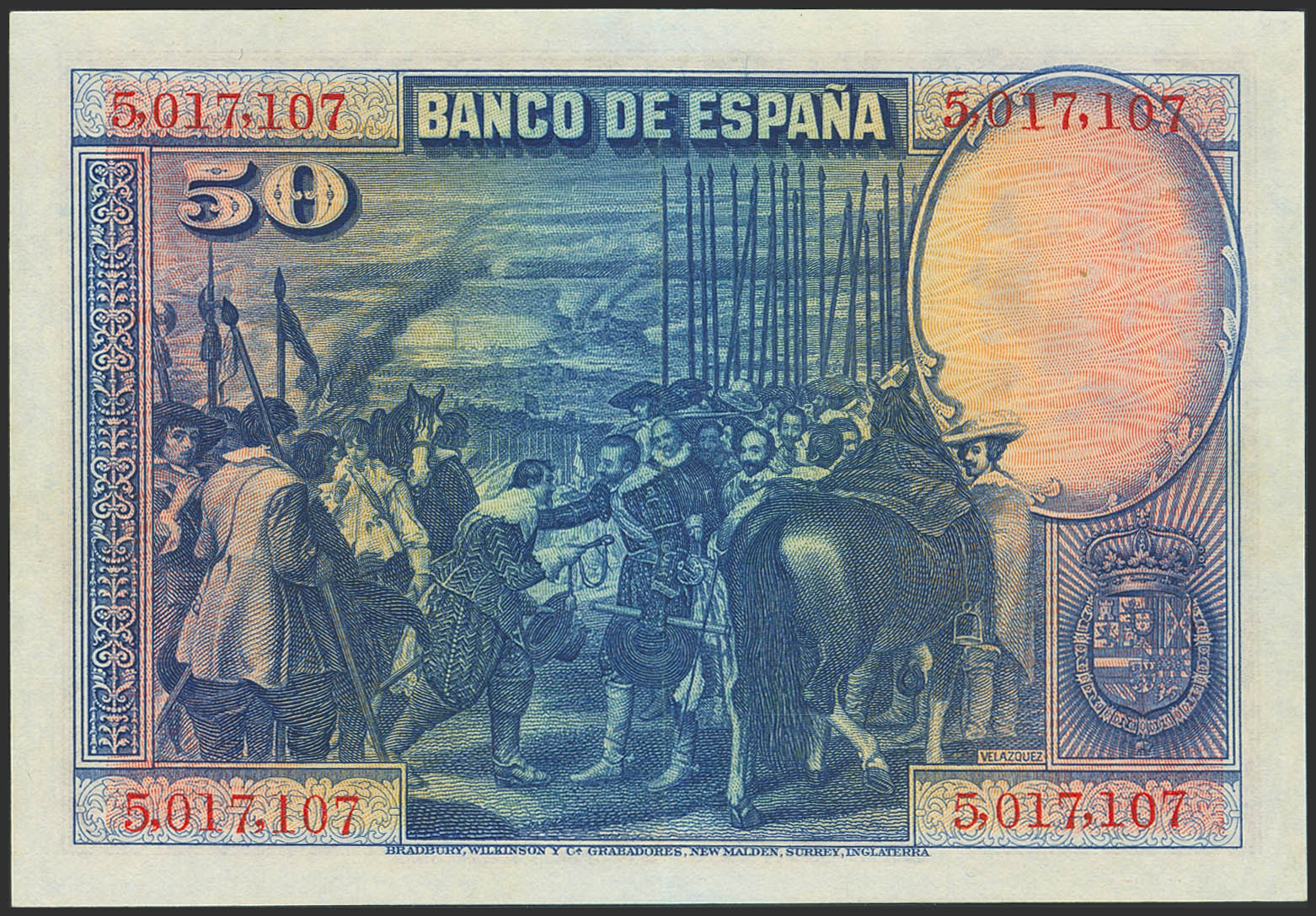 50 Pesetas. 15 de Agosto de 1928. Sin serie. (Edifil 2023: 329). Conserva gran parte de su apresto original. EBC.