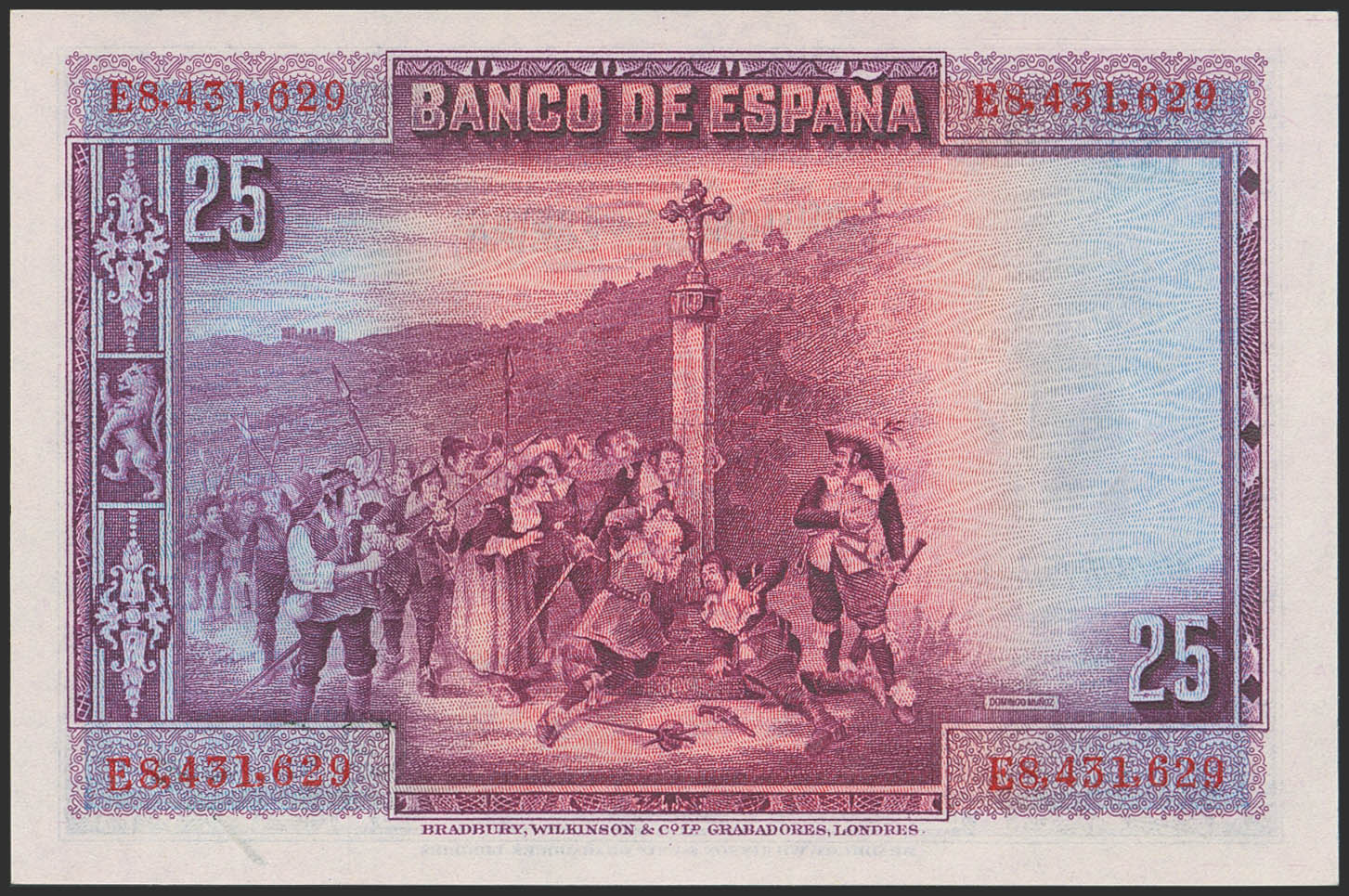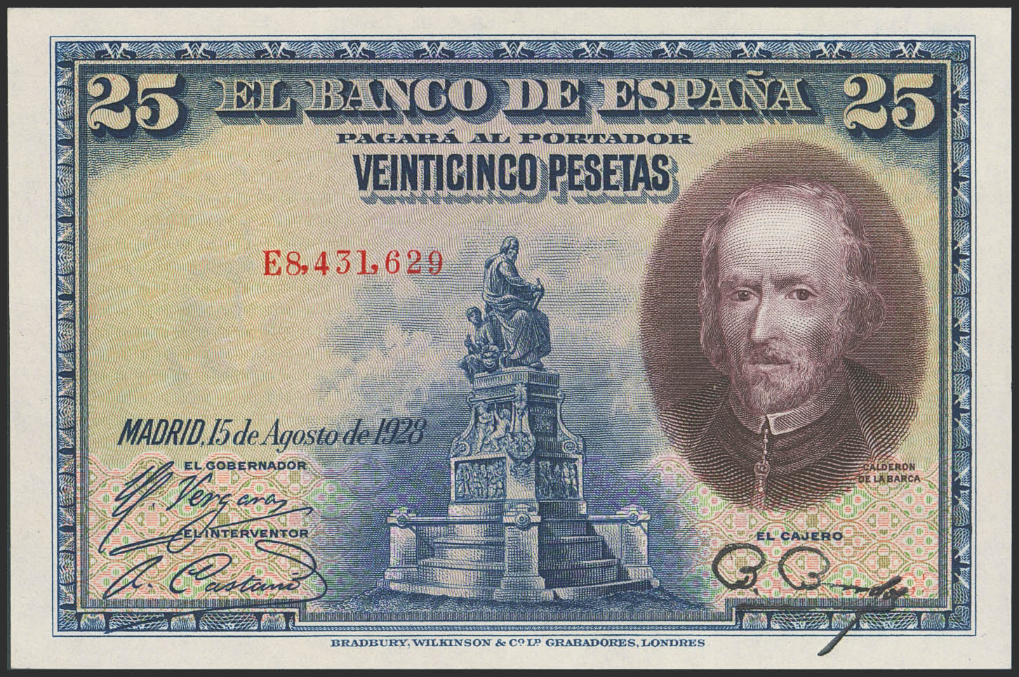 25 Pesetas. 15 de Agosto de 1928. Serie E. (Edifil 2023: 353). Apresto original. SC.
