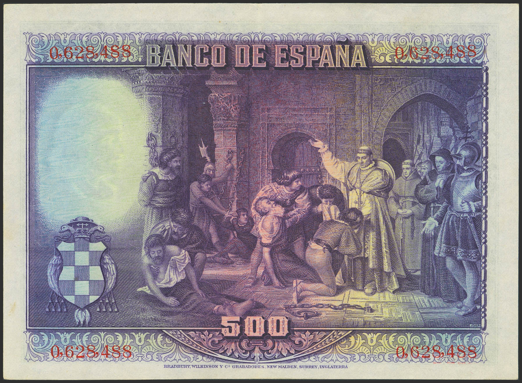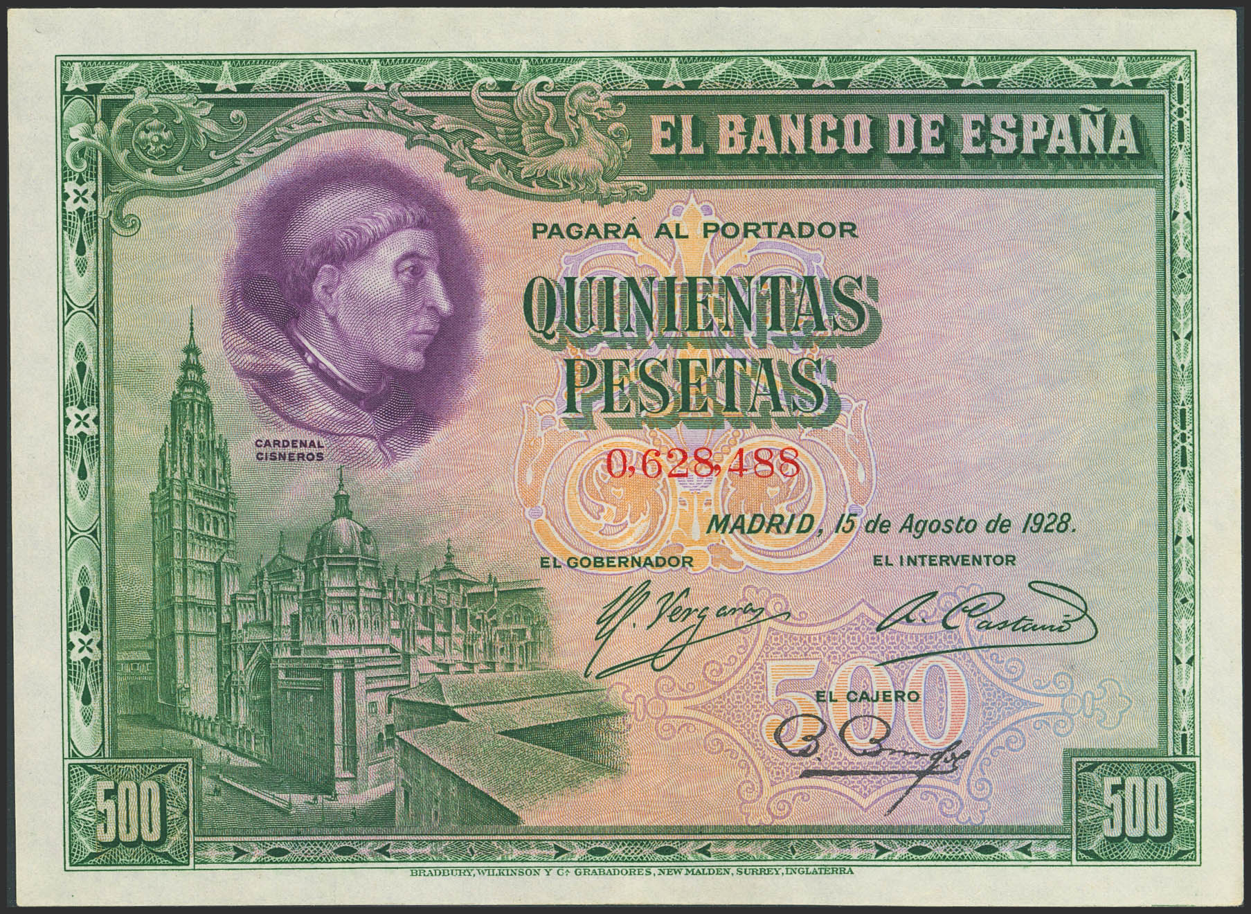 500 Pesetas. 15 de Agosto de 1928. Sin serie. (Edifil 2023: 356). Conserva parte de su apresto original. EBC.