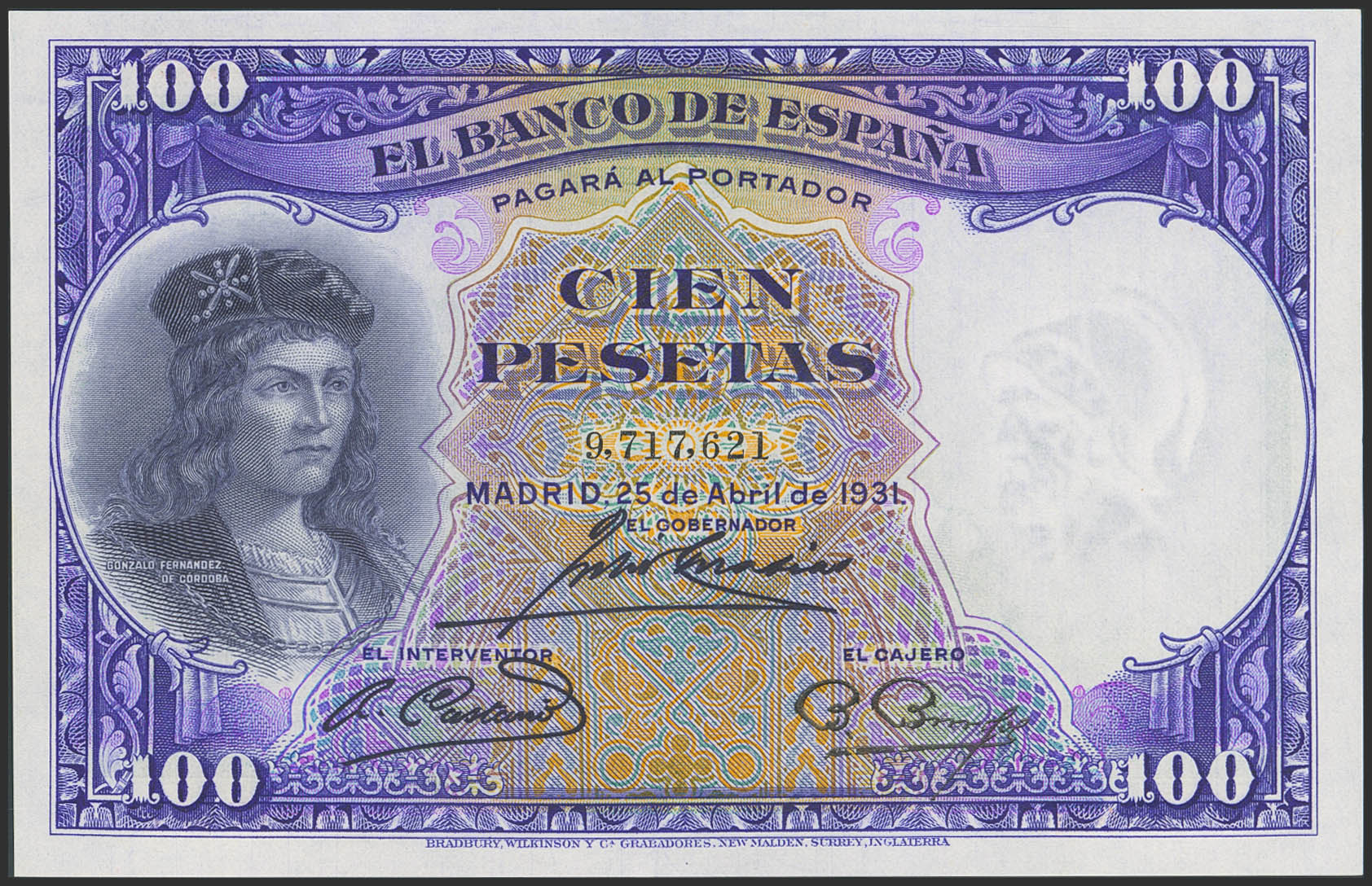 100 Pesetas. 25 de Abril de 1931. Pareja correlativa. Sin serie. (Edifil 2023: 360). Apresto original. SC.