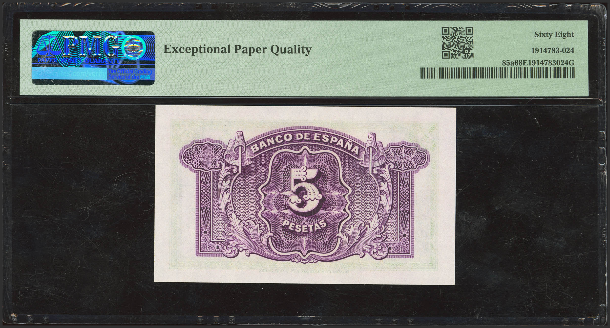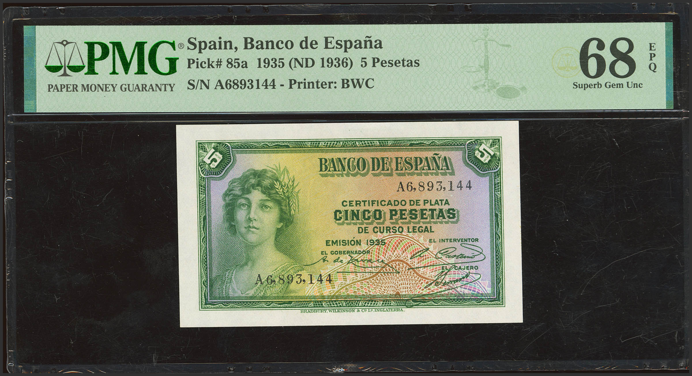 5 Pesetas. 1935. Certificado de Plata. Serie A. (Edifil 2023: 363a, Pick: 85a). Raro en esta calidad, apresto original. SC. Encapsulado PMG68EPQ.